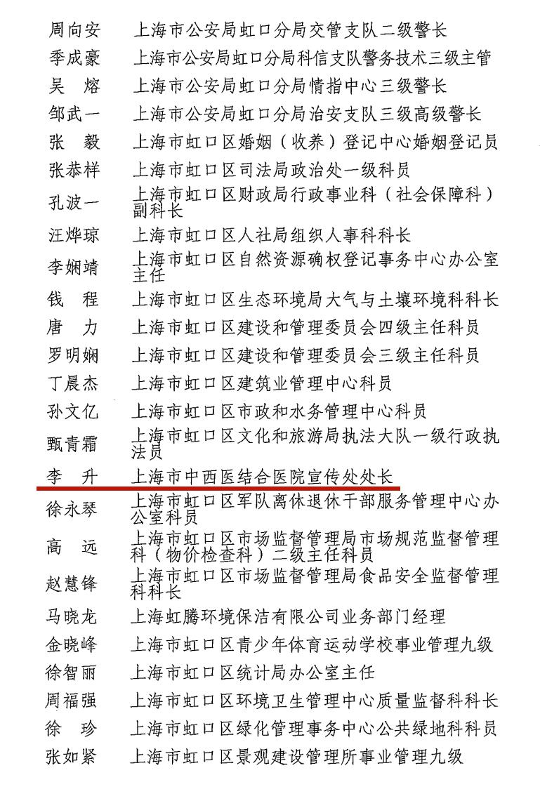 喜报 | 热烈祝贺上海市中西医结合医院史晶晶、李升获虹口区创建全国文明城区...