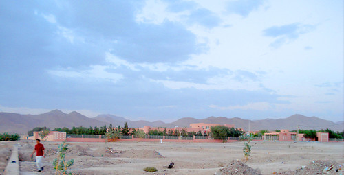 汽车过了马拉喀什市,就开始爬山,车速减慢到每小时50公里,我们先爬第一座大山:大阿特拉斯山,途经图卜卡勒峰(海拔4165米),经过3个多小时翻越,展现在我们眼前已是满目沧桑,到处是戈壁滩...。2小时后,汽车再爬第二座大山:小阿特拉斯山。这座山更加陡峭,又是花了3小时,汽车终于上了德拉高原。这里人迹瀚至,其中2小时车程内竟看不到一个人影...,大家心情非常沉重。为了赶时间,在沙漠中车速开到每小时120公里,尽管这样,当汽车抵达塔塔省城时,已经快晚上10点,抵达医疗队驻地-----塔塔省综合性医院时,大家全部瘫倒。。。