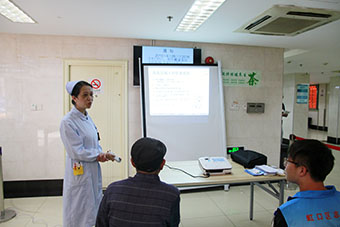 此次活动,医院组织了心病科、脑病科等7位专家现场提供医疗咨询,还安排了志愿者为市民免费测量血压、发放预防高血压的宣传教育资料。同时,在门诊一楼开设了“怎么确诊高血压”、“高血压与饮食”等一系列健康小讲课,一位病人高兴地说:“今天来医院看病,正好有高血压日讲课,坐下来听了之后收获不少,不懂的问题还可以当场询问医生。”